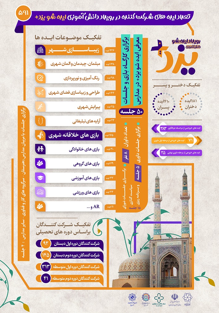 رویداد ایده شو دانش آموزی یزد پلاس که در دو محور زیباسازی شهری و بازیهای خلاقانه شهری، برنامه ریزی و اجرا شده بود، طی مراسمی با حضور رئیس و اعضای شورای اسلامی شهر، مدیر کل آموزش و پرورش استان، معاونین شهرداری و مدیران و رؤسای سازمان های شهرداری، در ایستگاه پایانی خود قرار گرفت.