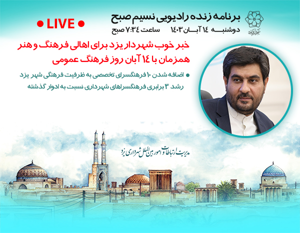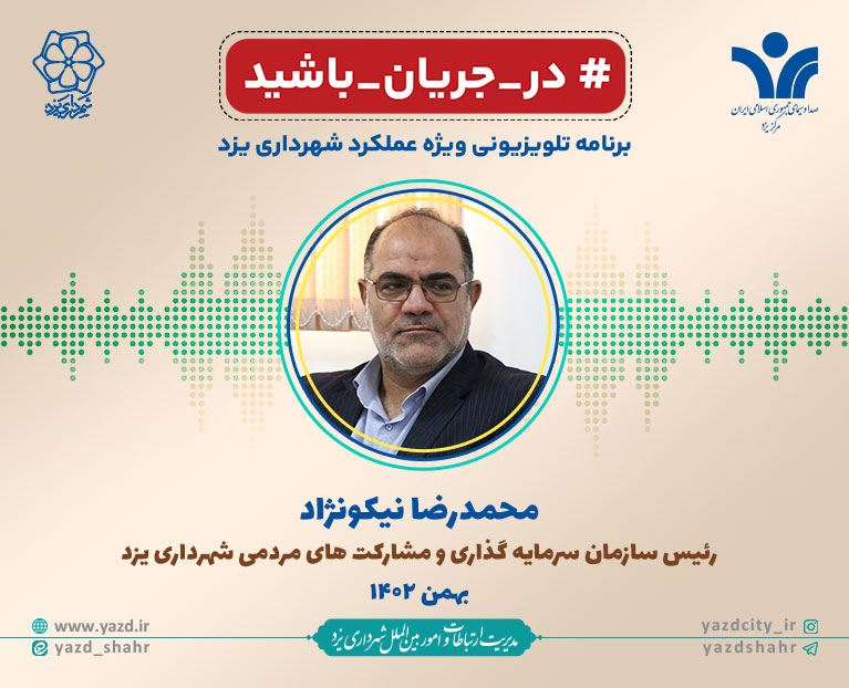 در جریان باشید (گزارش عملکرد سازمان سرمایه گذاری و مشارکت های مردمی شهرداری یزد ـ بهمن 1402) برنامه تلویزیونی " در جریان...